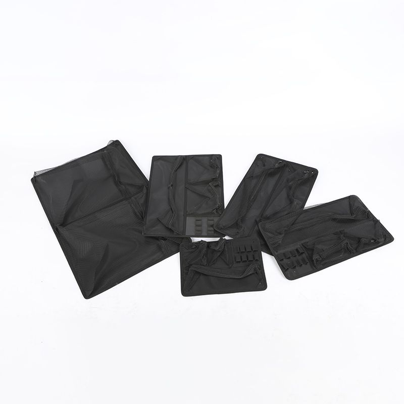 The WORHA Lid Organizer is made of simulated leather or ballistic nylon with nylon zippers. A wide variety of pocket sizes protect and keep your gear organized. The molded interior is designed to help keep your hardware, power cords and accessories entirely organized and in-view.
